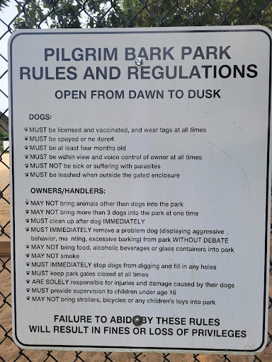 Cute little dog park! The dog park itself would better be described as a dog run, as it’s one of those kinds that’s a long, open space surrounded by a fence that’s mostly got room for dogs to run around in, with less actual things for a dog to interact with. There’s a large and small dog side, with the small dog portion being a little smaller than the large dog one. That being said, it suits its purpose well, and is an interesting place for humans to go as well as to take your dog to get some free reign time! Around the park are several interesting sculptures and a little memorial to dogs who have passed on, which I found to be honestly very cute and sweet. In the park itself there’s water fountains both for humans and dogs, but these were closed when we came by due to COVID. Speaking of, the park is a mask-only zone, so be prepared to sweat your mask the entire time you’re there! There’s parking in a somewhat small lot out front, but when we came at 5pm or so there was plenty of space. The park is relatively accessible, though the gravel may be somewhat difficult to traverse. Lovely little park in total, good for a quick outing...