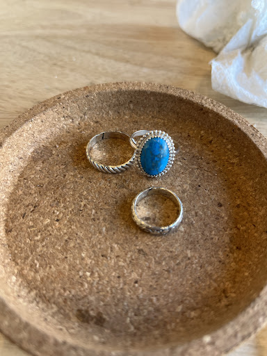 COST: For the three rings pictured (one gemstone and two stackable) my bill with a 20% tip was $164. This was with me providing my own stone rather than buying one of theirs, getting a $5 discount for writing a (this) review, a buy-two-get-one-free deal that meant one of the stackers was free, AND a 20% off the studio fee because it was my birthday (only counts if it is your actual day of birth) so I basically got every discount possible. If I had purchased one of their stones, it would have been $30-70 additional (which, as an aside, is outrageous, this is marked up literally ten times what you can get them at any gem show for.)