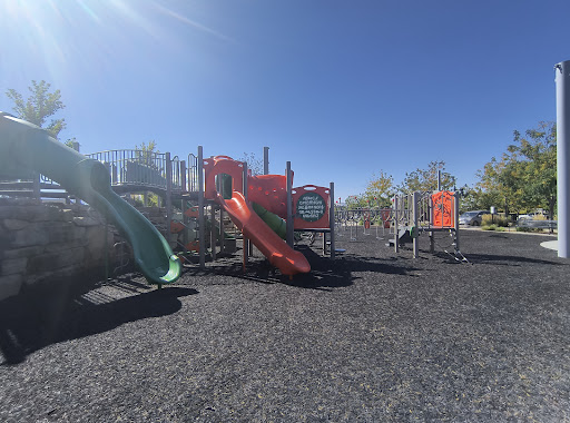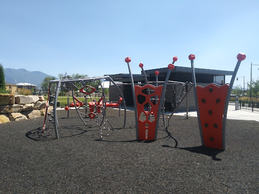 This is one of our new favorite parks! So far in Provo, this is the only park we have found with some shade over the playground. Some nice features are a drinking water fountain and sinks outside of the restrooms. In summertime my kids love to get their shirts wet in the sinks to cool down! There are benches and tables around the playground as well as a large pavilion with lots of tables and some scattered around the grassy part of the park. If you have young children, you will need to watch them on the rock wall. There is one large step that is difficult for my 3 year-old, especially coming down. I give it 4 stars because if they put the effort into creating shade, they could have done a much better job of shading more of the playground. Also the rock wall is a little precarious for...