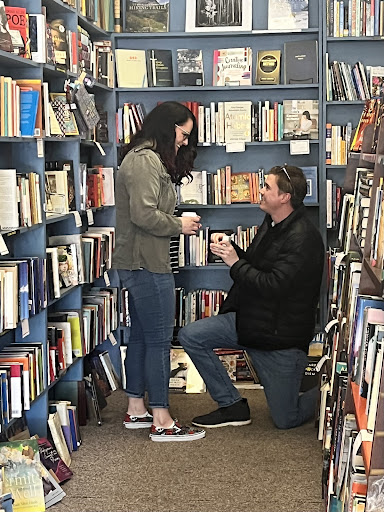 My husband and I come to Analogue at least every two weeks on our date nights, after stuffing ourselves with pasta. Regardless of the “fancy” restaurant we eat at, Analogue is always our highlight. When we first started coming, it’s because we love books and my husband loves records, but we’ve continued coming back because of the staff who has always been so friendly and knowledgeable in their suggestions when we stop in at night. We easily spend $100+ dollars every time we come (on books/record store products alone, not including the coffee or drinks we purchase). Kristin and Paz have always been the ones we run into when we come on date nights. They’re always so friendly in their conversations, remembering things about us and making us feel valued and like individuals every time we come in. I cannot tell you how many times they have recommended product to us that ends up being our favorite at home. Kristin has recommended “Lessons in Chemistry”, “Smoke Gets in Your Eyes”, and “Gwendy’s Button Box” to us, and we’ve loved them all! Paz has recommended one of Phoebe Bridgers’ albums (an artist we had never heard of before), and it’s now one of our household favorites. Paz also got me into poetry as a new novelist (reading poetry was a recommendation of a writing teacher I had to improve my fiction writing skills). Their knowledge and personalities have been things we look forward to on our date nights, as they add a very personal affect to our time at the store…so personal, in fact, my husband re-proposed to me after 13 years of marriage in the first isle of the book store this year, and Paz and Kristin helped him coordinate the whole thing! You can tell Kristin is passionate about the community she lives in, and that both Paz and Kristin are immensely supportive of local artists. We drop by during the day sometimes, but we do not get the same experience with the staff during that time. They are not rude, by any means, but they do not engage…and usually, we end up not buying near as much during the day as we do during our night visits. Paz and Kristin are the heart and soul of Analogue Books and Records, hands down! As you can see, this place holds a very special spot in our hearts, but not just for the fantastic atmosphere and product, but the people we’ve grown to love and call friends.