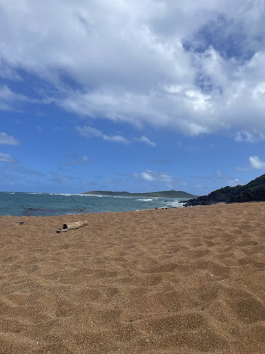 Read moreOne of my new favorite beaches. I couldn't feel a lateral current, but it still feels treacherous for swimming, so be careful. It's a steep beach so the waves really rush in and out with a lot of power. They also sculpt the beach sand into hills so the sand itself has a beautiful topography. In the spot I got in the water, the sand ended abruptly and I was standing on a smooth sandstone floor. You can climb around on the black rocks at the East end of the beach which is a fun place to watch the waves crash. The sand is a golden brown and had a course texture. There were a lot of little shells but nothing big - the waves probably break anything big. When we got there around 10am on a Friday, there was one other person, then a second guy with a camera showed up for a bit, then we had it to ourselves. As we were leaving around noon, more people...