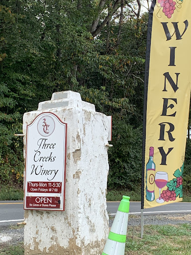 Read moreWhat a delightful winery! My husband and some of our friends stopped here on the perfect fall day and tried a lot of Three Creeks' red wine options. The cabernet sauvignon, cabernet franc and melange rouge were our favorites, all had great flavor and were delicious in their own way. We thought the flight, glass and bottle prices were all really reasonable as well. The staff was also incredibly knowledgeable and kind, explaining the different wines, different tasting options etc. The setting is lovely! Lots of colorful trees and great views of the vines. There is ample outdoor seating on the patio and on the lawn, plus a few fire pits with Adirondack chairs; indoor seating is available on two levels. Several bathrooms, all clean. You can bring your own food/snacks or purchase some of the options they offer. This is an adults-only winery (21 and up), which was great, it made for a nice peaceful afternoon. Loved our visit,...