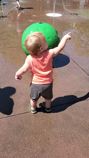Read moreGreat place to take the kids. It has quite a few different types of ways to spray the kids. I particularly like the two rotating buckets on a spindle. The faster the rotation, the further the water flies. Kids of all ages will like this spray park. There is ample space for parents to sit, either on the benches, concrete semi-circle benches, or on the grass beneath the shade trees. Plenty of free parking in the library...