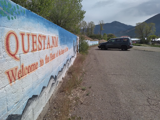Was moving...tire going down. But stopped for photo...great backdrop of snow in Mountains...๐๐ป๐ ๐ตโโ๏ธand nice l o n g mural and informative pieces...as across street from Historic trail about...