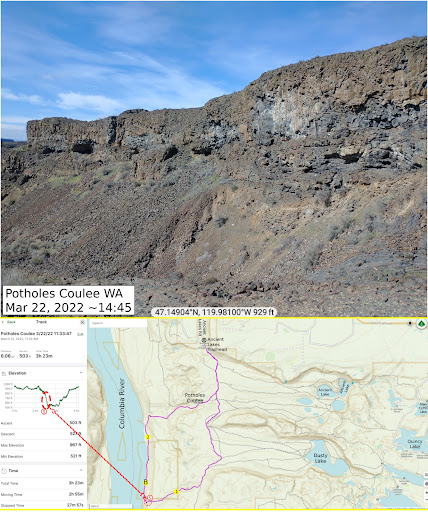 22Mar2022 TUE, 11:30 -till- 15:00, sunny ~50s_F i was having some fun rambling .. did a "Lollipop Loop" (T) {to put in some extra miles} : (T) 1 B 2 (T) - to marvel at another one of Nature Artworks: Potholes Coulee .. its soooo beautiful 👍 And to actually have my first "touch" of the Columbia River - its soooo beautiful too 👍👍😄