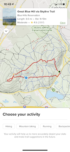 I highly recommend the Skyline Loop. Start at the Shea Memorial Link parking lot (651 Willard St, Quincy, MA 02169) and follow the blue trail markers. I hiked to the tower and back, which totaled about 14.46 miles, 6 hours, and 3,496 ft of elevation gain.