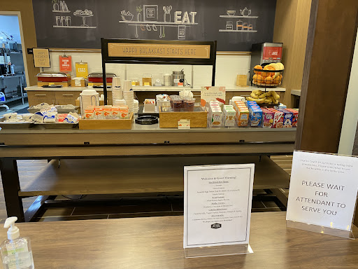 Read moreWe have been here approximately 24 hours as of this review so I feel I can give a good representation. We are on the 5th floor, king bed with a couch. The rooms are very spacious, VERY clean, and that A/C is top notch! Hot flashes ain’t no joke but the air was cool and the sheets were soft! The bathroom has a large stand up shower with mounted shampoo, conditioner and body wash. And let me tell ya - the body wash smells heavenly. The breakfast bar is a beauty. Now, I’m a big girl so you know I’m going to shoot you straight on this one. Waffles, scrambled eggs, potatoes, turkey sausage, yogurt, cereal, toast…. So many things!! Oh, and fruit for those of you that like to keep it G -rated on vacay. Everyone was so nice and smiling! I think they like their jobs and it shows! I’m not 100% sure what life is like around us with the exception of Wegman’s (what in the actual world - how have I never experienced this place?!), Starbie’s and Trader Joe’s. What I can tell you is - I had the best nap I’ve ever had in my life thanks to this amazing bed right here + the pool party downstairs. The location of the hotel is fantastic and I would even feel safe staying here alone or bringing my kids back sometime. Outside of the hotel bar area they have seating set up with those really pretty patio lights and what looks to be a fire pit. Beside that area is a pool- a pretty small pool- but a pool nonetheless. My only very small partial side eye was the birthday party that took place today- tons of kiddos in the pool and the seating area outside was - for the most part- unusable due to the party going on. Now, I’m not mad about it. I hope that child had an amazing birthday and collected lots of great memories - and gifts. I was going to hang by the pool today but decided not to because of the kid crowd ( don’t come at me. I have 4 at home and momma needed a talking time out) But the party gave me a really good excuse to stay inside and take a nap!! So cheers to you, new 8 year old!! All in all I would give this stay a 10/10. Nothing less. If you are on the fence just book this hotel. You...