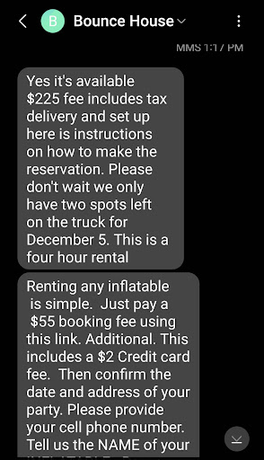 You also have to pay a $55 booking fee on top of the $225. You can get a bounce house cheaper than that at another local place that does just as good a job. And they don't hide their "additional" fees.