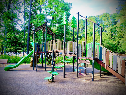 I spotted two separate playgrounds, each has a rubberized surface and mulch. The Baseball field appears to be lighted, there are tennis courts and basketball courts. And the park is connected to the Shelley Lake Greenway Trail.