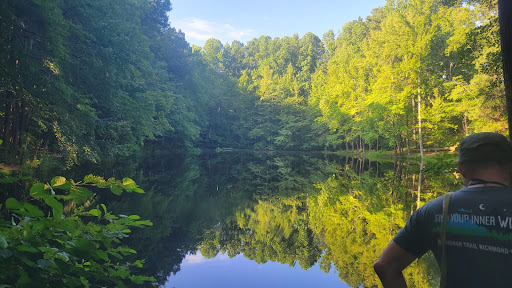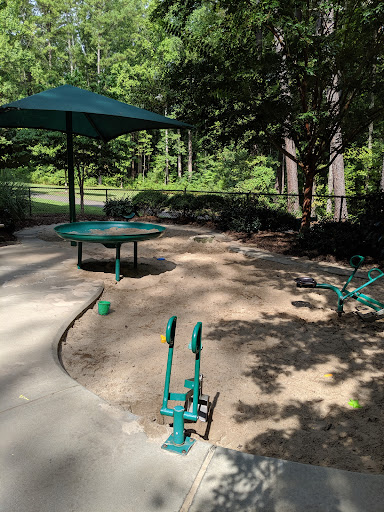 No restrooms. However the large port-a-potty is usually extremely clean, and well stocked with toilet paper and hand sanitizer. The Nature trail seems a bit short, and it leads through practically backyards of several houses nearby, which can seem a bit trespassy. Noticed couple drones flying through the tree line, not sure if private owned/nosy-neighbors or city owned/surveillance/security. Cool playground area for the little ones, with rubberized soil instead of plain dirt, and a few picnic tables about on the edge of woods. Ponds on either side, calming sound of water, and also neat to listen to frogs at near dusk. Otherwise quiet and neatly tucked away, never knew it was there until I noticed a car turning in one afternoon. Cool...