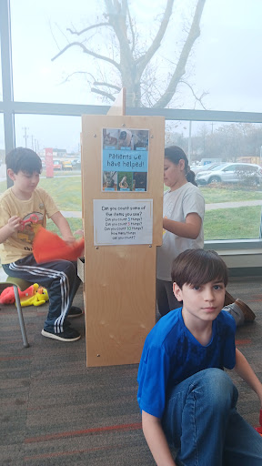 Large play area for kids with duplo blocks and puppet scene. Librarians are helpful and friends towards kids and families. They offered a fun scavenger hunt for the kids to keep...