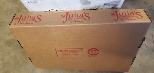 I always go to the farmers market this time of the year. That's when the lady who I refer to as the peach lady starts selling her peaches for the next six weeks. So if you like peaches the farmers market is the place to go in July and August and just look for the stand that says Julia's with the long line of people waiting to get theirs remember get there early they sell out quick I get there at 7:30 before they open The picture is from their box I've already ate...