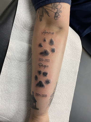 I found Jessie through a mutual friend and when I first messaged Jessie I sent him multiple pictures of my dog. I sent him a picture before hand of a tattoo style I was trying to achieve as well and asked if he was able to do the tattoo because I noticed his page didn’t have color tattoos or many portraits and I wanted a very vibrant colored tattoo of my dog. I even messaged him again and told him, I forsure wanted color and asked again if he could do it because I was really stressing on it, He assured me he could do it but still kept trying to convince me to do it black and white instead. I figured because that’s his preferred style of tattooing. I insisted on the color and that’s what he tried to do but did not achieve that. I feel if he wasn’t 100% confident that my tattoo was going to come out like the picture I showed him then he should have just said he couldn’t do it instead of taking it on. I told him after it was done I LIKED the tattoo because I felt bad but I wasn’t enthusiastic about it either and what else could I do after he already tattooed me. He also told me I was going to need to come back in a few months for a touch up… that shouldn’t be a thing with a fresh tattoo. It was nothing like i envisioned and it really breaks my heart. I am not happy with my tattoo. I will post the style of the tattoo I wanted and then the tattoo I got. The first is the one I wanted it like. The second is mine. If you’re looking for color tattoo or portrait I do not suggest going here. I’m very mad at myself for not going somewhere else that specialized in the work I wanted instead of trusting someone who had little to no color work show cased and probably very little experience with it even tho he claimed to have been tattooing for 7 years. I wasn’t going to do a review but after a few weeks I have decided that I don’t want this same thing to happen to someone else who wants such a special piece done. I ended up going to deadlift tattoo and having the owner wade try to fix my piece for me. Wade was able to take it and bring it to life with the color I wanted but it didn’t fix the dark black shading Jessie did on my dogs coat or the way his face looks. Wade did an amazing job trying to fix it but I’m still just not pleased because of how it came out of the first session with Jessie. The last photo is of wade...