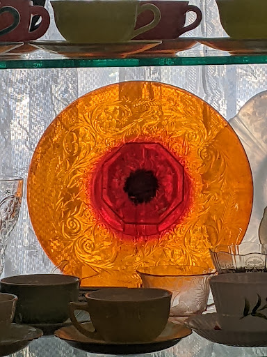 This museum houses case after case of glass, from early American glass to American Brilliant cut glass, to carnival glass, depression glass, elegant glass, mid-century modern glass to glass made by contemporary studios. Companies represented include Fostoria, Cambridge, Heisey, Steuben, Jeannette, Indiana, Federal, Blenko, Fenton, and many more. You will find bud vases made specifically for automobiles (yes, that's true) and a whole window full of cruets. There's an iron made of glass for ironing clothes. There's a display of just a few different goblets (one company made over 10,000 different goblets). At one time, there were well over 100 companies manufacturing glass products in the United States.