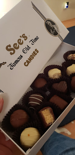 Read moreSee's is a long-standing tradition for holidays and celebrations. They are an old-school candy store that offers tasty confections in milk and dark chocolate.. they are packed for you as you make selections. Pre-packaged product is also available. There is always a line at See's, but the wait is worth it! They will offer a sample treat of the day while you wait. Friendly people even when store is crowded. Only drawback is price, chocolates run about $20 per pound, but they will happily sell a small bag of a few pieces. Having a bad day? Stop by and you'll be smiling...