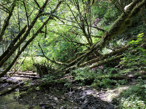 Read moreVery close by (for me, behind my home), and can be a pleasant walk through a forest on a sunny day. Trail starts on an old road (closed and not used for many years), and decends through the trees on a gradual slope toward the creek at the bottom. Once you reach the creek, you can follow the actual trail along it's edge, in a somewhat SSE direction, or continue on with what is left of the road as it begins to ascend the eastern side of this portion of the May Creek Park valley. Though one is not likely to see them, deer, cougar, black bear, and porcupines, are just a few of the animals that can be found in this...