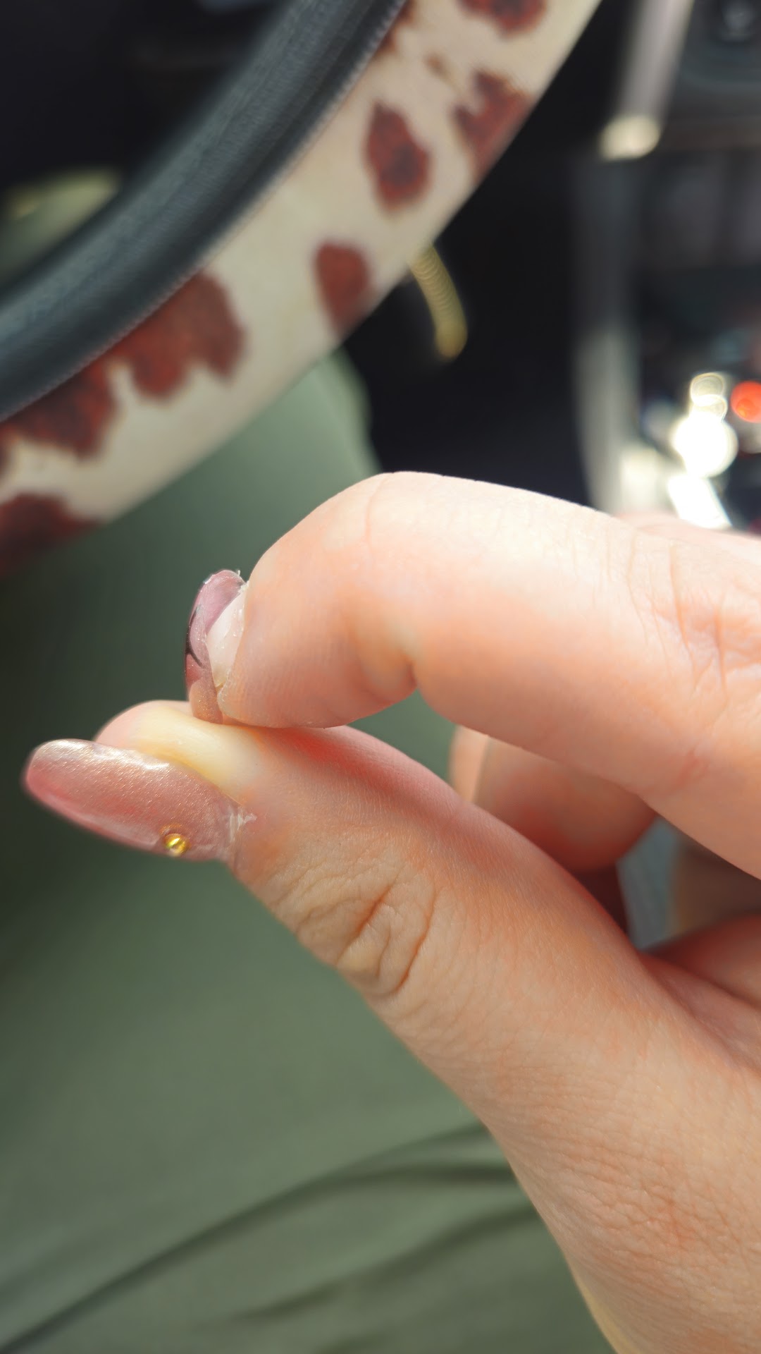 Less than a week later, the gold studs had completely worn off, leaving behind just white dots. And by day 9, the extensions started popping off. Now my natural nails look terrible, with a visible line across each nail where the extensions used to be.