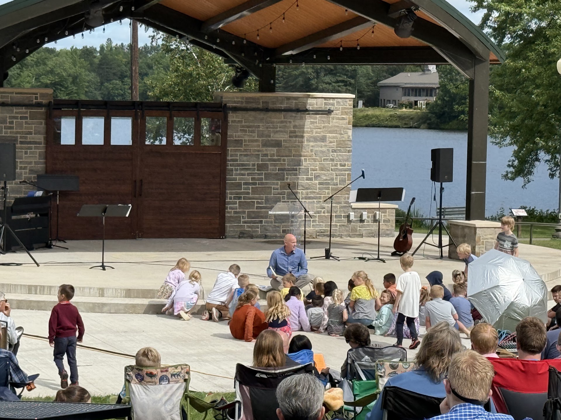 Read moreNewly paved (blacktop) walking trail with "story stops" along the route. Nice and level for easy stroller pushing, although the geese between the playground and beach area can be somewhat territorial and aggressive towards path walkers in the spring time. Tons of parking all around the park. Brand new amphitheater with covered bandstand near the playground. Lots of shade trees nearby. Looks like a new fishing pier might be going in early 2023. Besides that, there are 3 metal docks for fishing within the park.