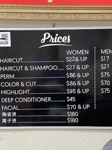 Jade salon has been around for 25 years, it's a local neighborhood hair salon which adepts to the time inits own way. Some staff has been there since the beginning, they have the larger albeit aging customers, such as myself who's been continuing customer for 18 years, I kept going back because they did excellent haircuts. The other half the stylist are in their 20s, catering to teens and young adult customers, with wild cuts and wilder colour and dyes. The space itself looked low rant and uninspiring, so if you must get a hair do, cut, color in glitzy setting with loud music or scarcely clothes stylist, then Jade is not for you, look elsewhere. If you want good cut/do/style/color at a very reasonable non-ripoff price, give Jade a try and you will be pleasantly impresses with your hair afterwards. Seasoned stylists has huge customer base and expect waiting time during common busy times. Young stylist has a fair customer base and those are wild youth, often no waiting, do explains in detail how you want your hair, then you'd get it. So, do I recommend Jade salon? Well I'm a 18 years customer so what do you think? Yes of course. Would my teen daughter recommend Jade salon? She does her hair there too, with color/perm/cuts all that whatevers new thing kids does with hair. Last thing: customer base is 80% Chinese, they know how to cut Asian/Chinese hair, if you are Chinese/Korean/Japanese and ever got your hair cut done wrong going to a fancy glitzy downtown place where men stylist are either flaming queens, or bodybuilders, and women are all tactical DD cups... and paid $$$ for a haircut. Then Definitely give Jade a try, you won't like the low rant setting, but you will like how your hair is...