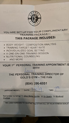 Ā Ā Ā Read moreDO NOT SIGN UP! Itās a trap!!! This was the worst experience with Gym Memberships that my husband and I have had. They try to draw you in with tons of false promises. We are both retired military and when I say this gym was a NIGHTMARE, it is! They will do everything to make it impossible when itās time to terminate the membership. We cancelled our services with them because of relocation and this was back in October. Up until this month, Golds gym was not only trying to charge our cards for membership payments even though we PERSONALLY went to a location to cancel everything and were given a piece of paper, Compel Fitness was charging both my husband and I $160 bi-weekly each for personal training we never got and cancelled the very next week. We dealt with a āpersonal trainerā by the name of Laurel and her customer service was HORRIBLE! After she assures us everything is all set and says goodbye, now we are in Florida and I had to close both cards of my husbands and mine because I they literally tried to pull out money every other day with diffeeent amounts, etc. so once I provided both banks with all documentation and proof of cancellation the banks BLOCKED compel from being and to pull anything out anymore and launched FRAUD charges. STAY AWAY FROM THIS GYM, THERE ARE A LOT OF THINGS THEY TELL YOU TO GET YOU TO JOIN, but itās a MISTAKE!!!!! Go do boxing or martial arts or something. This gym is a joke and SCAM to take money from people!!!! If theyād have a ZERO rating option, this gym has it!!!!! Iāve never had a gym experience like this, so terrible. Please, Iām trying to save people...