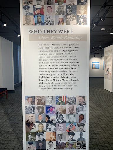 ย ย ย Read moreIf you have the pleasure of catching a volunteer by the name Mr. Gayen then you will be in for a treat. I may as well have had leprosy for the rest of the staff. When the old guard goes out of these historical sites, then we are all in for a reckoning. You canโt get to the centerpiece, the statue and names, right now as the glass outside of it is being repaired due to man made destruction. The video downstairs on the Birmingham was incredibly well done and touching to say the least. I figured out how to play it myself as the staff downstairs was engaged in perpetual water cooler talk. The artifacts and history of munitions throughout the wars Virginians engaged in were very informative. Downstairs they have an art exhibit that is great, but the main exhibit upstairs wonโt be ready until October as they reset from...