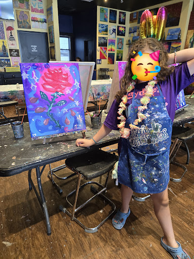 Read moreThis is a good party venue to get your guests to interact with each other without forcing it. They give you a blank canvas, paint, brush, and step by step instructions to recreate a painting chosen by your host. I was there for a 60th birthday party. First we mingled and had food and drink while we waited for everyone time to arrive - about 30 minutes. A couple of people were reluctant to participate because they couldn't "draw a straight line". The real fun began as we tried our best to follow instructions and create a masterpiece... especially after drinking a glass or two of wine (or spring water). Our instructor was friendly, humorous, patient, and gave step by step brush stroke directions. We complimented and critiqued each other's art work (in a fun way) throughout the entire process. Even the quiet ones were laughing and participating. We had desert while the painting dried. Everyone gushed about having a great time and was very glad they came. We took our painting home as a...