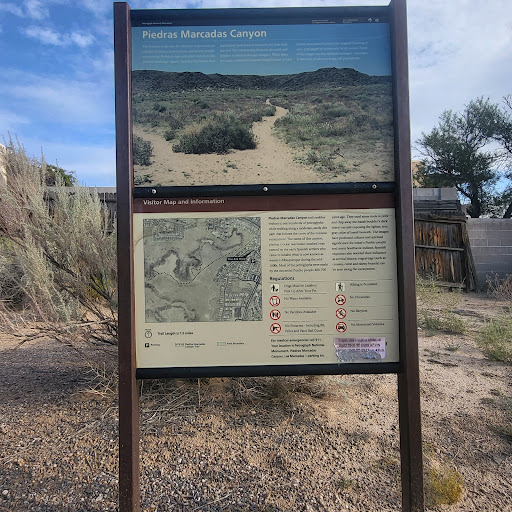 Read moreWild mix of urban and ancient! The official parking area is in a neighborhood by a quick lube and Walgreens...that’s right Walgreens Drug store. As you gain entrance to the Piedras Marcadas National Canyon trail, you peer into backyards of residents on either side who, when purchasing their homes were informed by eager Real Estate agents “Yes the neighbor behind you will always be a National Park.” Ha Ha The trail itself is moderate with only slight elevation changes. Its silty, powdery with some rockiness. The trail is marked but the markings are old and deteriorated. Petroglyph’s are frequent and fantastic; looking for the one with all the hand prints, we found it more than once. We were there on a cloudy breezy day, on a hot sunny day you’ll need a hat and sufficient water. We met Dave the park ranger, he’s only been around this area 60 years, he was friendly and...