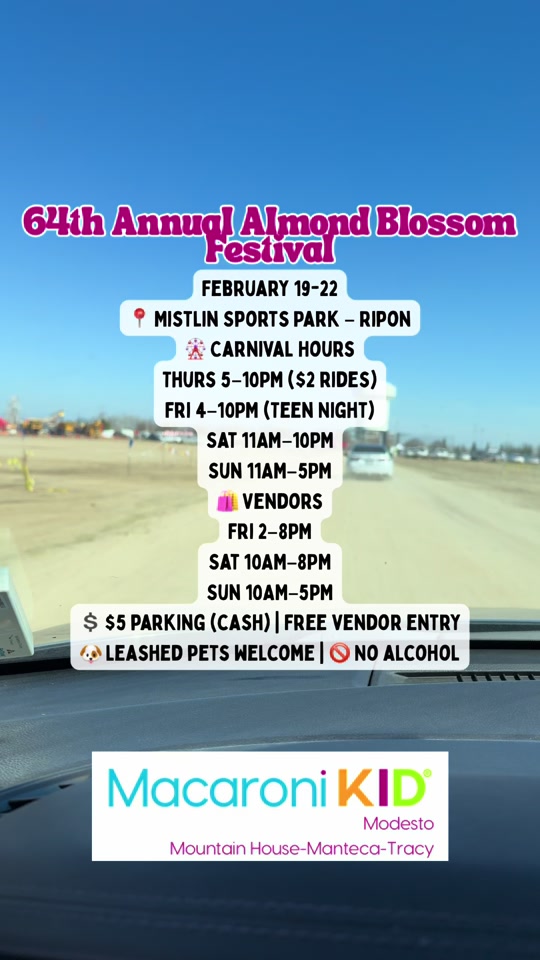 Read moreMistlin Sports Park in Ripon has the Almond Festival today with a variety of food vendors and a stage for music including carnival rides games and other merchandise to buy such as Nailed-it-by-Nydam who sells hand crafted cutting boards, tables, and serving trays. Variety of foods including treats like traditional ice cream churros and cotton candy. The Carnival has plenty of fun rides as well as a variety of Rights not just one and they are all the jit and they are very well made it so you have no worries that something will happen to you while you're on the ride as well as professional customer service with all the vendors that are there to help you have fun and I especially love the police that they have their in order to keep the peace and protect the helpless... $5 for parking or you can park inside the Sports mistlin Park area and walk all the way to the fun... The park is also a place where you can have a picnic or play soccer or bring your children to just run around and have a good time and it's right next to the carnival for the Almond Festival... May you all have fun and God bless you all......