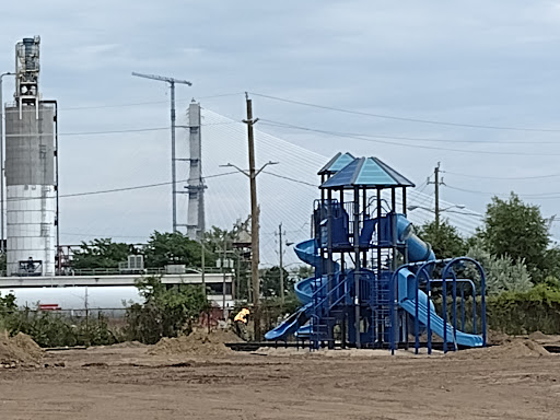 Quite the little gem on the river near US Steel in River Rouge. One large pavilion with 3 picnic tables provides plenty of shelter for a small to medium gathering. Rent for the pavilion is $100 for the whole day and that covers admission fees for all. Otherwise, the fact that you need to have a city pass to enter, keeps unwanted loiterers from interrupting your party. Plenty of shade trees near the shelter. Only minor complaints about above ground tree roots that can trip you up if not paying attention, mosquitoes galore (and they're the silent and deadly type) and goose poop everywhere. Playground for the kids, fish from the pier or just enjoy hanging out near the water. Literally, rent the pavilion and you have the entire park...