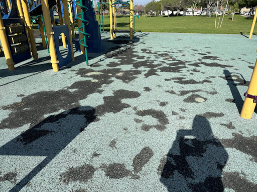 This park has a lot of open grass area which is fantastic for kids to run around in. There is also a wide and long concrete path, which is great for kids to ride their scooters or bikes on. There are two playground for different age groups; littles and bigger littles. There were some beautiful trees blooming these gorgeous pink flowers. Unfortunately, this park needs some TLC and upgrades. The flooring was worn out in many places and more sadly was...