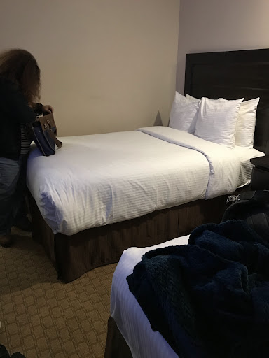 Read moreOverall for the price this was a fine hotel, with a few minor issues but no huge detractors. The room itself was small but decently sized, single king bed. The TV allowed HDMI and also had basic cable, huge plusses. The mini fridge was nice, but the lack of a microwave less so. There was room in the wall unit for a microwave, I assume they were once there but removed for electrical reasons? Not a huge deal. The bed itself was very comfortable and clean, no bugs or pests to be found. The pillows were the usual hotel soft. The restroom had a nice warm shower with jets, a toilet that could flush a dozen golf balls, and a hair dryer. The living room/bedroom was okay. The chairs were hard, and the table small but useable. I appreciated the ability to fully open the window to let fresh air in. The AC unit/heater worked wonderfully, and the door locked secure.