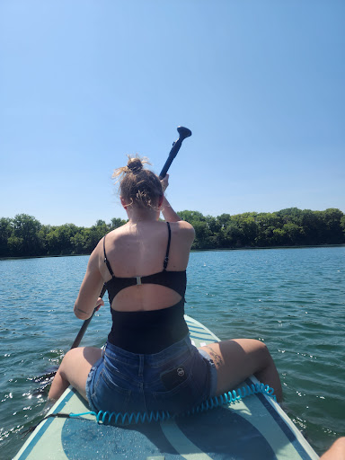 Read moreMy daughter bought a paddle board and took me here. It's a really great spot. There is a pay side (I didn't see how much) to do the beach and inflatable obstical/bouncy section. But that is only part of this great area. We went to the right just past the playground there's a picnic table and a small ramp to put in our paddle board or saw others bring in ertubes as well. Some people dipped in for a swim. There were families fishing on the sides. There's a path to a tree with a rope swing even. All available without a fee. The water must not been too deep as it was a toasty 85-90 degree day but the water was not icy. I'm used to lake Michigan or lake Geneva which are both freezing even in mid summer. I highly recommend this spot for a great...