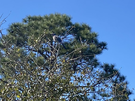 If you seek out the scrub jays, please respect their space. They are territorial and you can stress them out. They have a very limited habitat. If they make a harsh squeaking sound, that’s the warning that you are too close. They will charge you, so keep your distance and dogs away. I’d say 50 feet is close enough, bring binoculars.