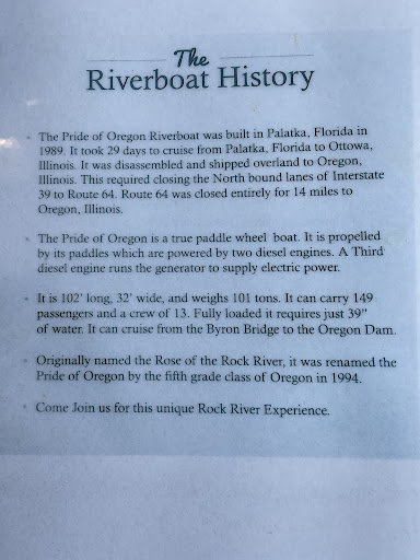 Read moreWe took a lunch cruise on this boat. We moved slowly up and down the river with mostly rural views. We had a choice of beef or chicken for lunch. The meat serving was at least twice as much as I needed. The beef covered the veggies, which needed seasoning and were overcooked. The twice baked potato was pretty good. Wine was available for $5. The lunch and cruise cost $46. It was nice, but not something I need to do again. The boat was an actual paddlewheel. The statue is called Blackhawk after a local warrior and is a tribute to all the...