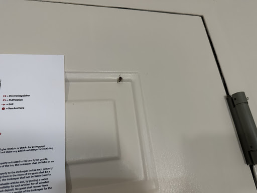 The guy took the strike plate out of the door frame, leaving a gaping hole in the frame so the engaged deadbolt allowed the door to chatter in and out about an inch when door was “closed”. Manager moved me to a third room.