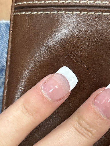 -Hands covered in acrylic -Lumpy underneath Drilled hard on natural nails AND skin -Rushing so fast that i had to keep asking for corrections, which she happily gave but not without attitude… -Tools were seemingly not sterile (drill bits, used a cuticle cutter on her own nail mid service) Flat on top, thick on sides, if you know about acrylics… -There was no nail prep (cuticle push/buff) -Lints and hairs in my nails -bubbles in the white that collected dirt and now look disgusting