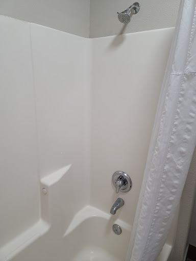 Back in our room, our door creaked very loud when opening and our towels wouldn't dry overnight which tells me there wasn't nearly enough airflow in the room. There were tortilla chip crumbs from previous people left in a drawer under the TV, which seemed to leave a grease stain indicating they'd been there a while. The TV stand had a dozen holes just randomly drilled into it. The desk near the window had a leg clearly broken and was about to fall over. The alarm clock alarm was left on and woke up me, my partner, and our three kids at 6am - just one of the worst places I've ever stayed. They left half full bottles of shampoo/conditioner/body wash. Are they used before? Left behind? It was about an ounce of stuff - just barely enough for one person - how is that helpful in any way?
