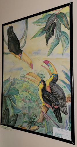 One of my favorite things to do when traveling this country is to hit the little shops and support local businesses, especially the shops with locally made art! The first time i visited the gallery in Main Street arts last year, i got this awesome wind chime in the shape of an elk and some locally made candles. This latest visit, I found a gorgeous stone necklace called dragon's teeth made by Helen Walters, a beautiful original watercolor of toucans called "gossip" by Ken Hernandez (it matched my tiger and toucan jacket, i couldn't resist š). Last but not least, the coolest, most beautiful tool i didn't know i needed until my husband pointed it out - a seam ripper necklace that can be stored pointy side in on the stunning wood part of the necklace, made by Bobby Goode. I wish i could remember who made the wind chime i got last year, but i do remember she and her husband have a corner on the front near the door.