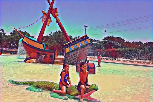 Read moreThe kids like the variety of things available to do here: they can enjoy the sprinkler features in the splash pad area (the boat has slides, but those are only for little kids), go down the (rather slow) slide for those over 48", try their skill on the crate walk, or swim in either the shallow or deep water.