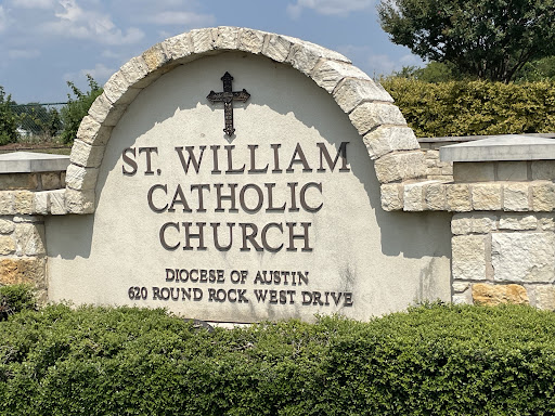 Saint William Catholic Church is located in Round Rock, Texas, near the Brushy Creek that was part of the Chisholm Trail. To protect pioneers from Indian raids, some forts were established along Brushy Creek as early as 1635. The first community to be established in the area soon became known as Brushy. When the area requested a post office, the US Postmaster General did not approve the name because it had already been assigned to another village in East Texas. In 1854, the local postmaster selected the name of Round Rock because of the well-known stone which marked a safe crossing over Brushy Creek.