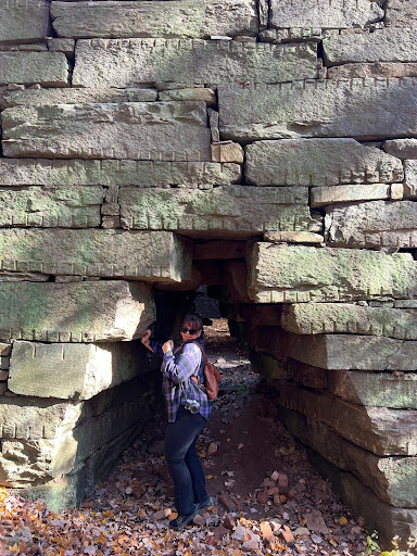Little did he know the adventure he was getting into, when our youngest son decided to join us on this hike. Driving into the parking lot I started to wonder "will have a place to park", after our 1 hr drive, since the place was packed. With our packs and hiking sticks we set out into the woods. Starting our journey we came across 3 people ending theirs. They recommended taking the donkey path. "It's a steep climb but worth it at the top." We took his advice and headed up the donkey trail. The path was a little rocky but soon we were introduced to the first relic of the mining era of this mountain, the roasting ovens. Roasting ovens were used to drive carbon & sulfur out of the ore on its way to becoming steel. Standing inside these huge ovens you can see the world from the ore perspective. We continued up the trail which looks like it was made out of the old ore cart paths to get the ore from the mountain to the ovens. Not long later you come across the first mine shaft that you can look inside. They have been mostly closed off so you can see inside but not go inside. It's interesting to look into the guts of the mountain and picture what it felt like to work there. Next we came across a number of air vents. These are covered with steel cages (wonder if they used local steel?), with slates that are only large enough to look through but not get through. You can see the deep gash in the earth. You can hear the continuous rain as the water coming out of the moss drops into the depths below. After all this it was lunch time. We found a large table like rock on the side of the path. After lunch we came to a divergence in the path. The blue trail (Hodge trail) headed off into one direction and Carter loop headed into another. We decided to take Carter loop (red trail). During this tedious trail we came across a hiker that had gotten lost and said the trail does look like it loops. We forged on and found the loop, which is in the middle of the trail. This area may look better in the summertime but to us it was an overall detraction from an interesting hike. This is the first time my son started to ask if it was time to go home yet. After the Carter loop we got back on the blue trail, our moods instantly improved. As you follow the trail down the mountain you see and hear babbling brooks, tranquil ponds, and boulder mounds. If it wasn't so late in the day we would have loved to stop and play in these miny mountains. They look as if a baby giant was building rock piles. Then you come on the river, which looks like a great place to set up a hammock and relax in the sun. We made it back to the lower compound of the mining operation, to see the cold furnace and the casting lanes. We need to go back to understand and see what this area might have looked like in its hay day. For us it was time to go as we were sore and tired after our 8 mile hike. But, we...