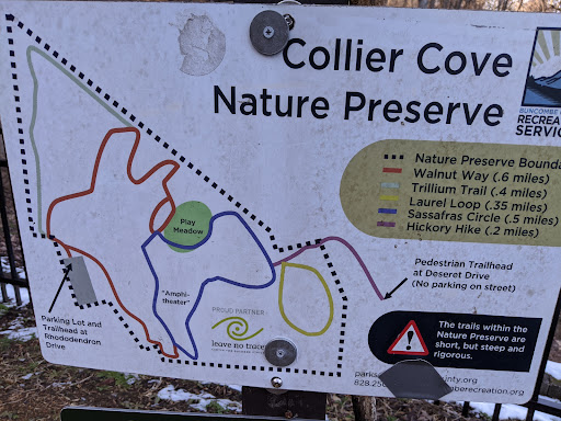 Read moreLove this little oasis of forest just two miles from the main strip of Airport Rd, Arden. Yes, the trails can be quite steep, and residential homes can be seen from parts of them, but there are some great views, comparable to an overlook on the Blue Ridge Parkway. Definitely check it out during seasons when the trees are without leaves for the best views. Much of it is obscured by leaves in the warmer months. The parking lot is a bit long and a bit narrow. For example, my F150 supercab takes up about 3/4 of the width of the lot when parked at a 45 degree angle from the side (which is the way the parking spaces are arranged). The trash large trash by the trail entrance can be difficult to close properly, as it is supposed to prevent animals from getting into the trash. I did start by saying I love this place, right? It truly is...