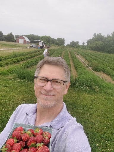 Always fun to pick your own strawberries. Southwest Michigan is a great place to live. This was the second to the last day for pucking but there were plenty of berries to pick. Commercial harvesters went through the fields yesterday so most of the very large ones were gone but still plenty of juicy berries. The farmer's son said the best berries are before the end of the 3rd week of June. I'll definitely remember...