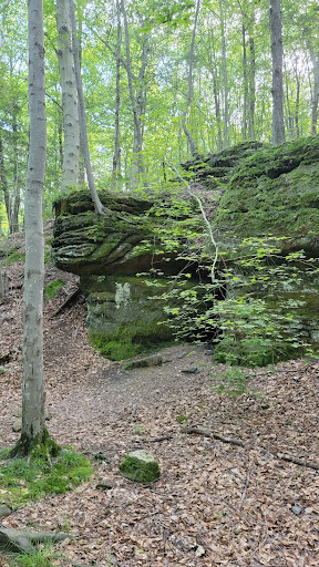 I recently visited The West Woods for the first time to do some hiking. There is a beautiful air conditioned nature center building with some exhibits and very nice restrooms adjacent to a large parking lot. I hiked the Ansel's Cave trail which was a pretty steady uphill incline through the woods for about the first 20 minutes or more of hiking. There were also some steps involved before you finally reach the Sharon Conglomerate rock outcroppings. A plaque gave some information about the rock formations. There was also a scenic Creek nearby and a little wooden bridge and small boardwalk area near more of the outcroppings then the trail continues uphill with additional steps which were somewhat steep, so this would not be a great hike for folks with mobility issues. The trail continues through the woods and then loops back toward the park driveway and nature center area. I also did some hiking on the trails near the nature center area, and those were an easier hike. I definitely recommend bringing some water with you if you are hiking to the rocky outcroppings since a lot of it is uphill. This park is located near the border of Newbury and Russell but it was definitely...