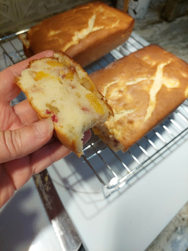 Note: I tried a new recipe using Mitcham Farms peaches. Divine! It's called Peaches and Cream Cheese Loaf, made with peaches and, you guessed it, cream cheese. How could we go wrong with THAT...