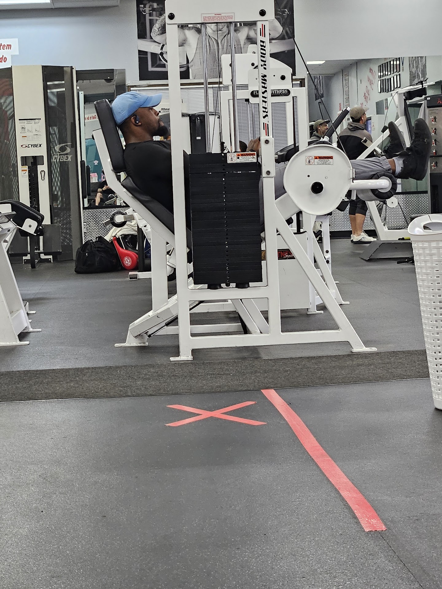 The seated lateral leg press machine isn't very good. You can max out this machine very easily, and the foot plate is kind of high not really allowing for a "low footed" leg press. It would be nice to replace this machine with a better seated, lateral, leg press machine.