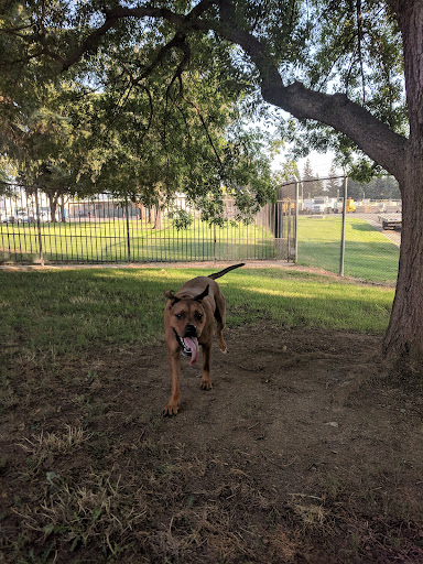 Nice big dog park with huge redwoods and good size hills to walk and play on and around. It can be busy in late afternoon when the after-work people bring their furry friends but my dog loves having so many friends to play with (new and old). There is always at least one good runner to race with and usually a good doggie play-bite-face wrestling peer for him to frolick with. Nice and friendly people too! It's always clean too, as there are poop scoops and garbage cans within easy reach of any of the big areas. Parking is also great there. It can be muddy in really wet weather and there is a big and slippery puddle at one end for naughty dogs to get filthy in but it doesn't dominate the park by any means. The hills can be slick during extended drenching rains but it still feels pretty cozy under all those huge and beautiful trees. Of course in summer it's got to be the coolest dog park in Sac, with sunny areas interspersed with nice expanses of shade and dappled light. And, bless their hearts, the powers-that-be always have some lights on for when we get there after dark. If you love dogs and the crazy games the play you'll love it here. There's room to play with your critter one on one and multiple other canines for their social pleasure too. Up to you. Maybe we'll...