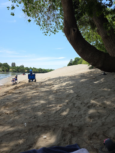 Tucked away from eyesight driving by its easily missed .but if you happen to notice in time to pull down into the parking lot and walk maybe50yards down you'll come upon a beautiful sand beach that's got this inlet in the one end of the beach where it's the one place in sacramento where I'd feel safe taking my kids too its not deep but long and many things to discover for the children ,class baby fish minnows turtles now and then geese ducks and polygons there is ample life jackets supplied for free and many well tended to garbage cans all together its a very nice beach.on the weekends there will be many boats pulling in to enjoy the nice beach and go swimming or bbque open from sunrise to sunset with a 6dollar fee you can't beat it for a day at the beach. When the stripers or salmon make their yearly spawning run you'll find several fishermen lining the banks where many nice fish have been landed before. Great place to teach your children to fish or just get away from it all without having to go far ...