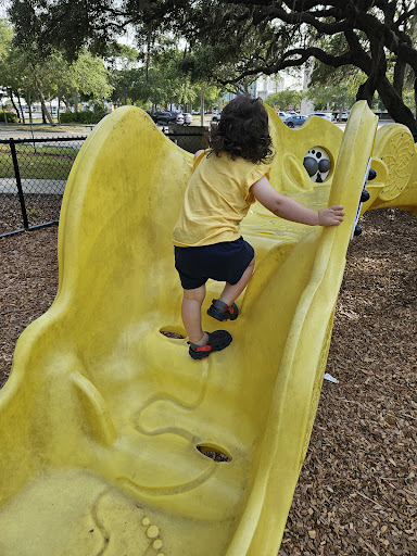 Great park especially for little ones. Nice double swings so you can swing together. Lots of slides that aren't too high up for toddlers. Spinning chair, climbers, beating drums, large grassy area, covered tables, but no restroom. Close to hospital parking lot because the hospital expanded and is a lot bigger over the years but the park is fenced in. Backs up to a residential neighborhood. Quiet, quaint and cute! I think it's...