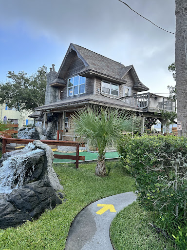 We've been to a few mini golf places down in St. Augustine and Jacksonville, FL. Nothing compares so far to Anastasia Miniature Golf! Not only is it beautifully decorated, it's pretty well maintained. I did take off 1 star because some of the mini golf carpet was ripped, or needed washed. I did read they flood during hurricane or big tropical storms so upkeep is consuming. But they are doing awesome! There was many of the 18 holes that had new carpet down. I don't except the carpet to be perfect. One hole I thought it had black carpet but it actually was suppose to be green. With the Florida rain and humidity I don't except the carpet to be perfect. Each of the 18 holes had a sign showing the best way to get the hole in 1 with a cute riddle. My son really liked the different obstacles for each hole instead of just a flat green space. The pathways brings you all around and up stairs and around buildings! Very fun to see where next whole was going! Oh and did I mention the owners take very good care of the buildings and gardens! There is plants everywhere. Very appealing to the eye!